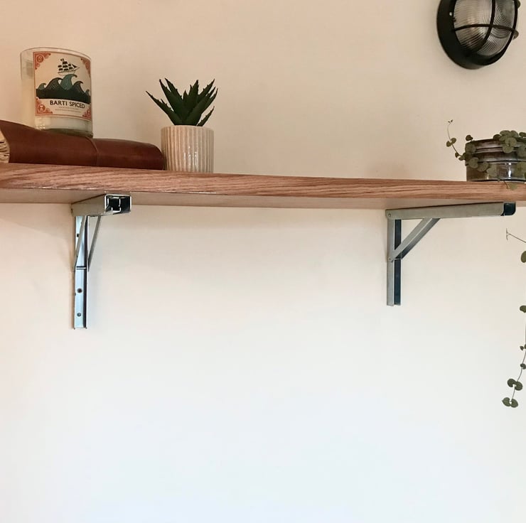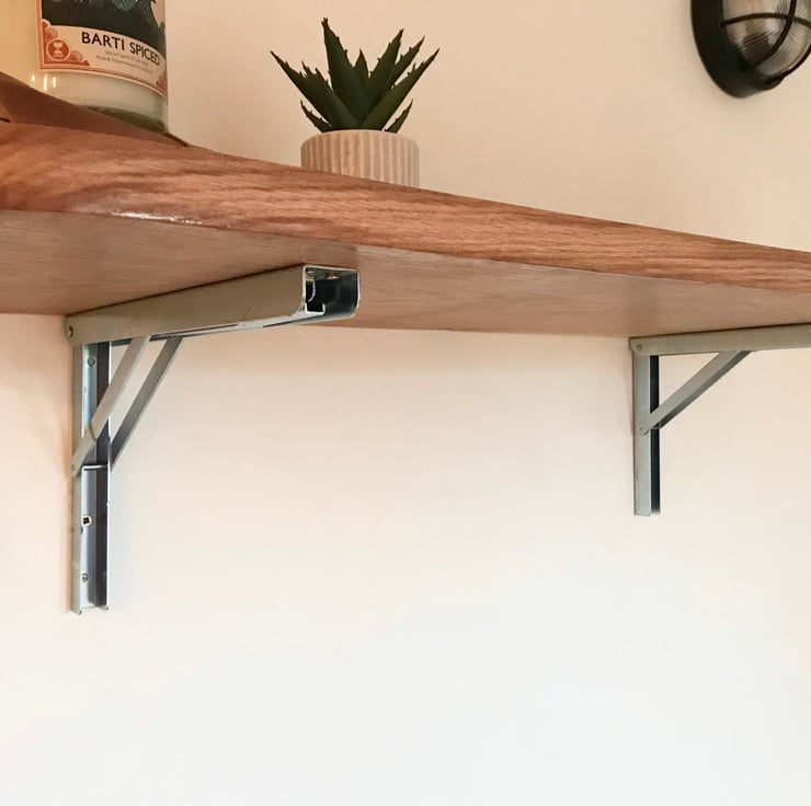 Handmade here in our workshop each piece is individual and unique, the bar can be mounted on to folding brackets as shown in the pictures - we do not supply these but the link below takes you to the webpage to purchase them.