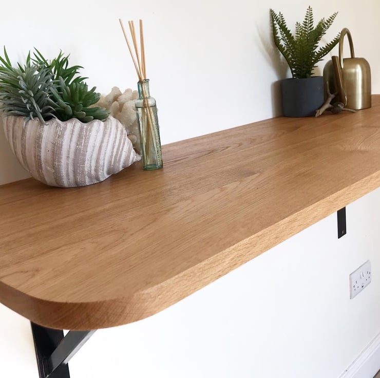 Made to order solid oak breakfast bar, counter, bench, home office.
