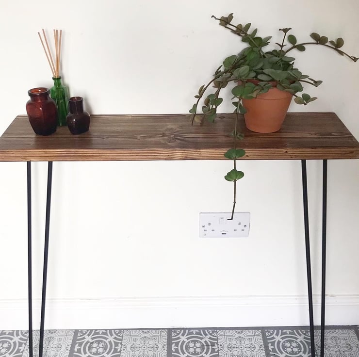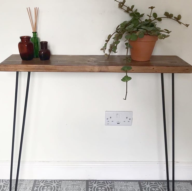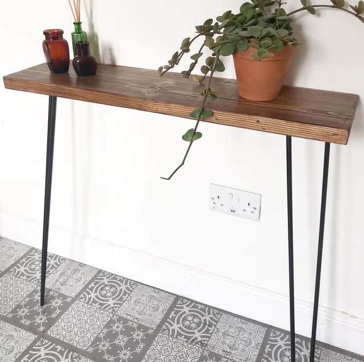 Made to order hall console table on hair pin legs with small brackets to fix to wall for stability.