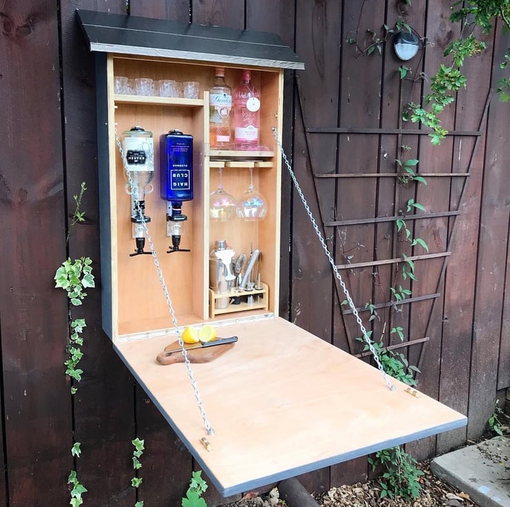 Handmade Murphy bar, can be used in the garden as a cocktail bar or indoors as a compact drinks cabinet.