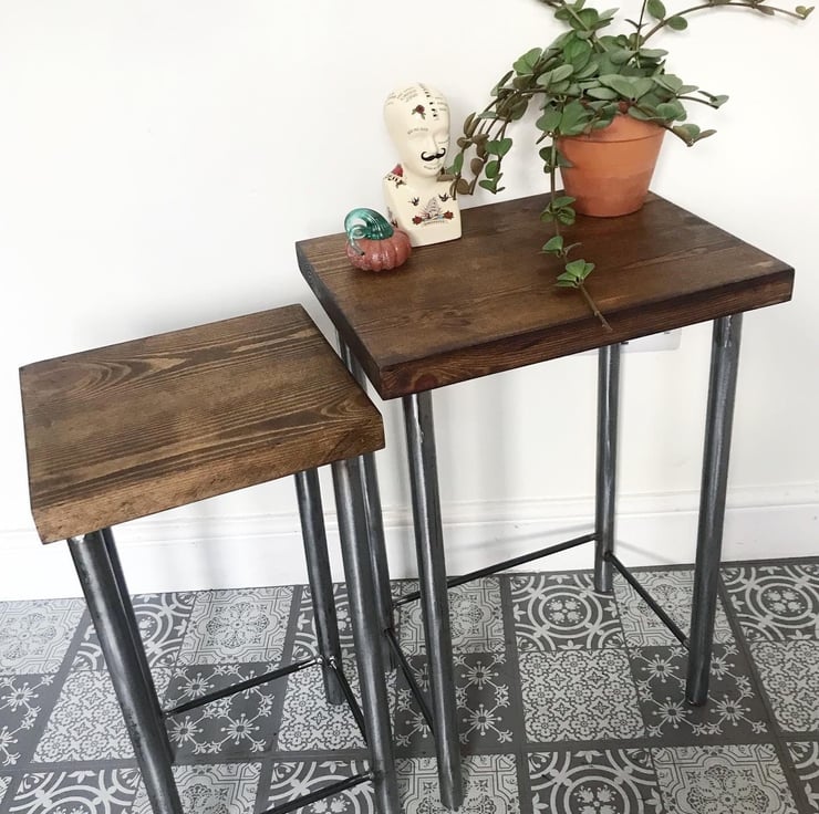 All furniture is handmade here in our workshop. They are all individual and unique one off pieces of timber set on a strong steel frame.