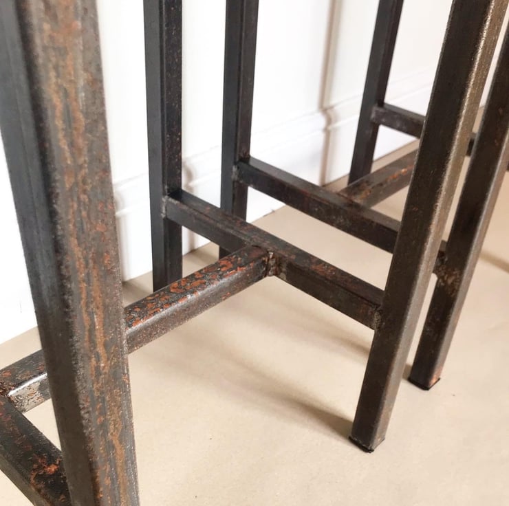 The steel as shown in the picture has a beautiful rust patina which is clear coated to protect it.