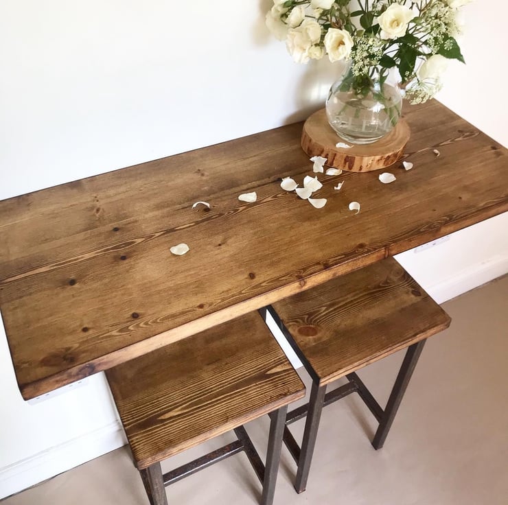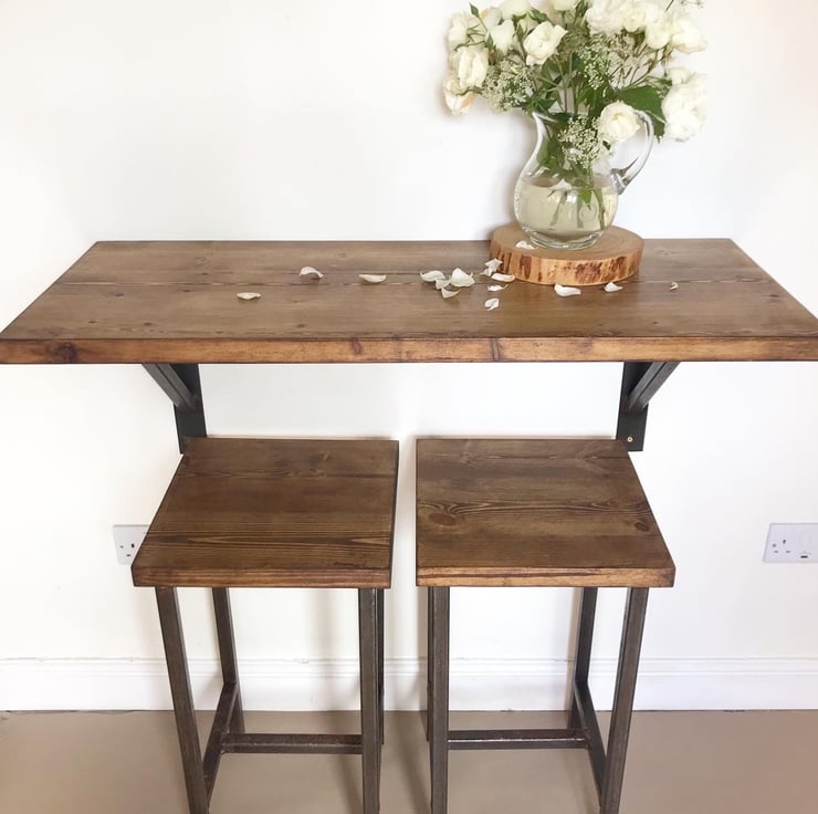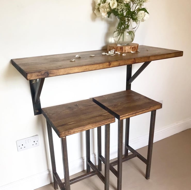 Handmade here in our workshop each piece is individual, the timber has different tones and patterns as it is a natural product not a manmade artificial substance each one is totally unique, the bar comes with the handmade steel brackets as shown in the picture.