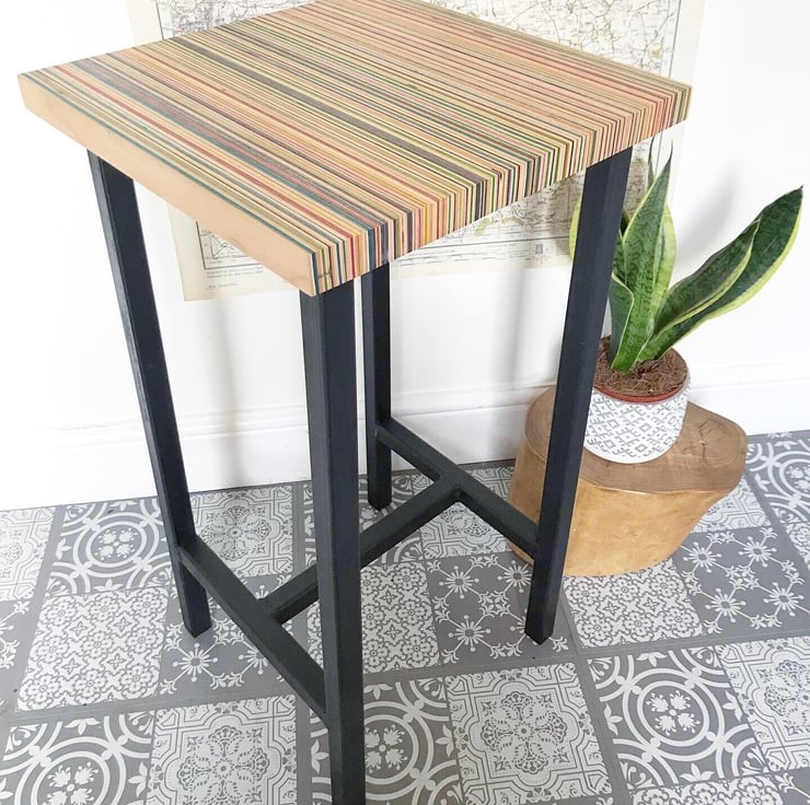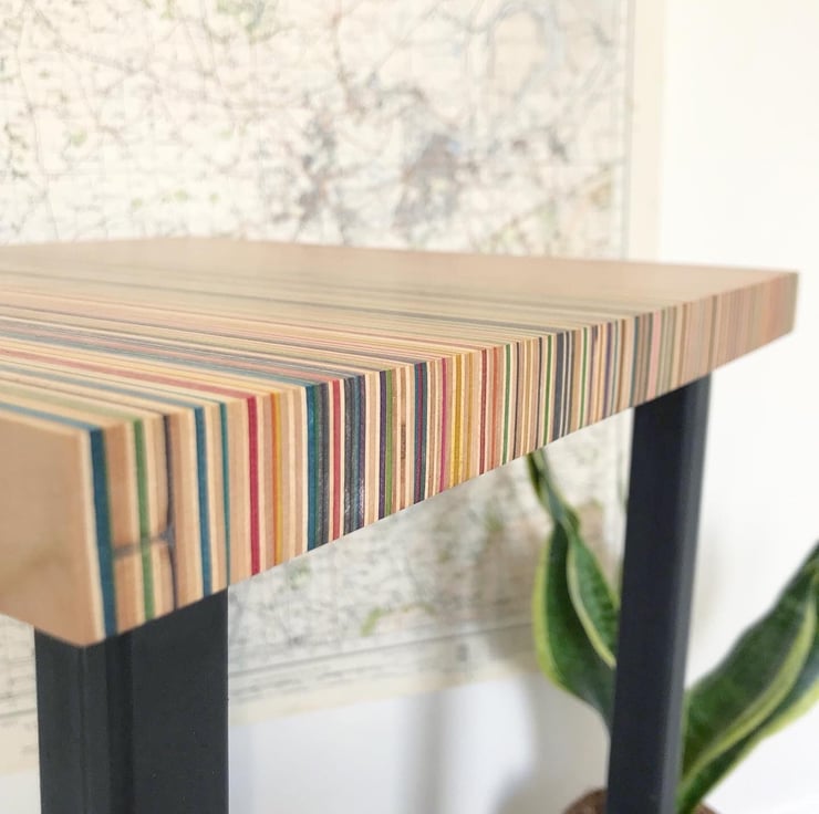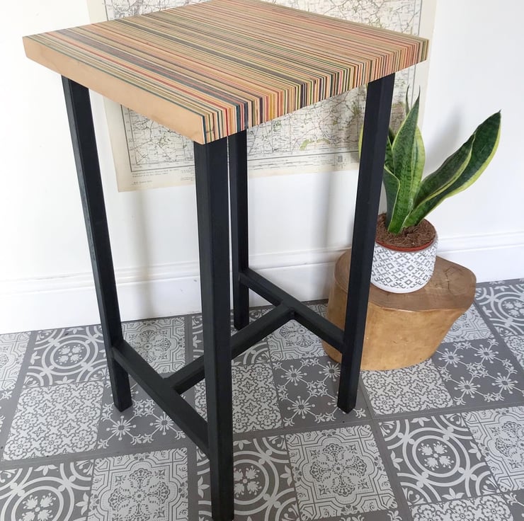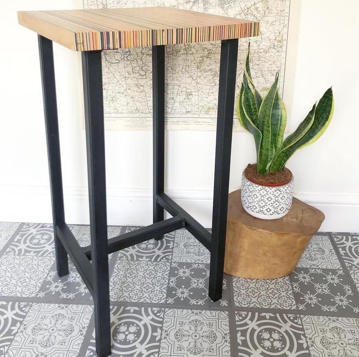 The steel base is handmade here in our workshop and the skateboard seat pad is made hand made by the amazing Ded Wood Designs