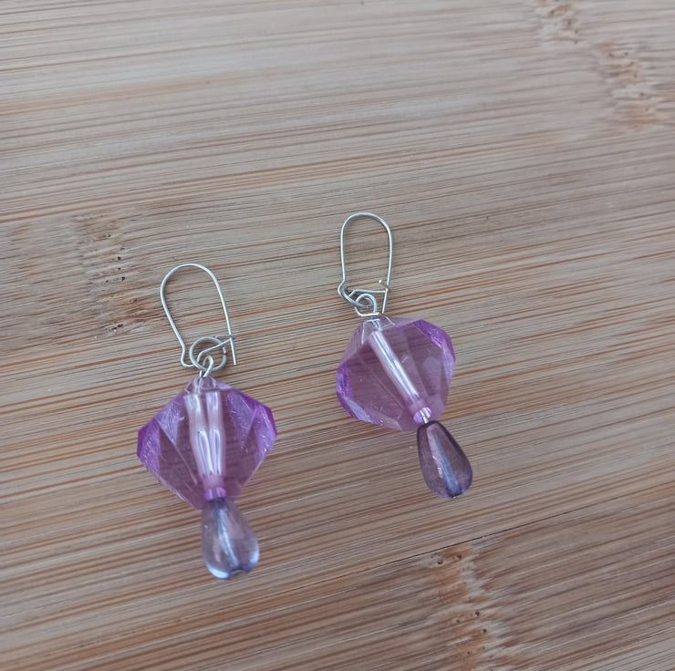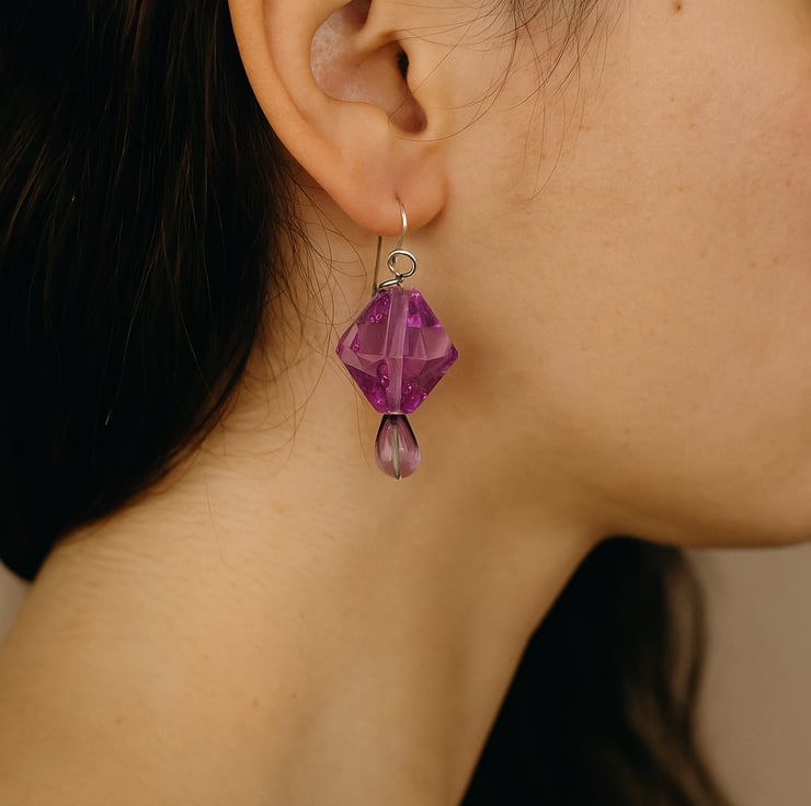 A large acrylic bead together with a teardrop shaped smokey glass bead. The earwires are silver plated and the earring drop is approximately 3 cm. These earrings will come to you in an organza gift bag. Gift boxes can be purchased separarely.