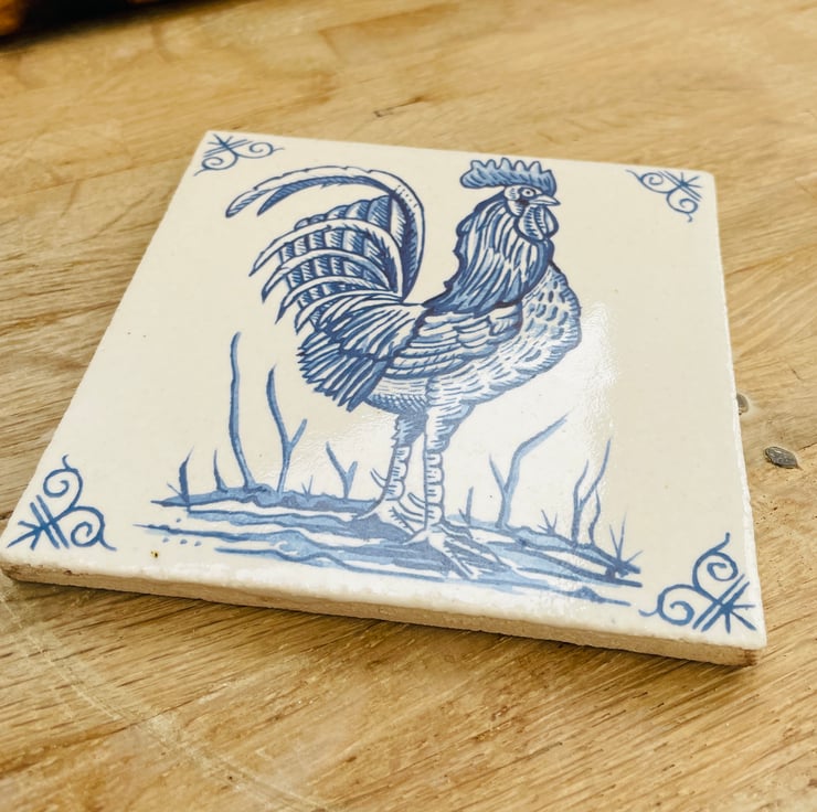 Handmade stoneware tile with Cockerel image, 11.5cm2