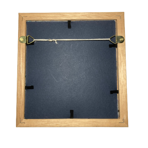 The final piece has been framed in a wooden frame with a picture area of approximately 4.5" x 5". Please note, photographs of the framed piece have been taken with the glass removed to avoid reflections.