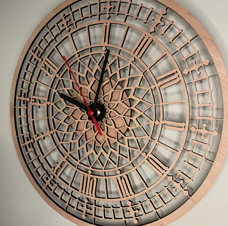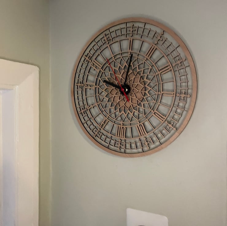 A super detailed Big Ben clock made from sustainable Forestry Commission (FSC) approved English Ash. The clock features a Quartz mechanism which is certain to keep time just as well as the real thing. The back features a simple hoop hanging mechanism which means positioning and hanging your clock couldn't be simpler!
