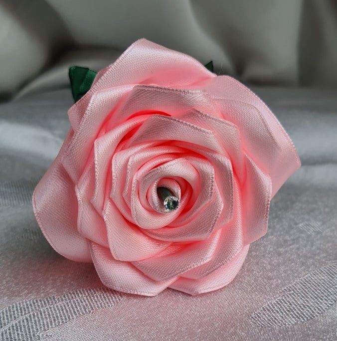 A fabulous handmade gift. One Baby Pink Ribbon Rose available only.