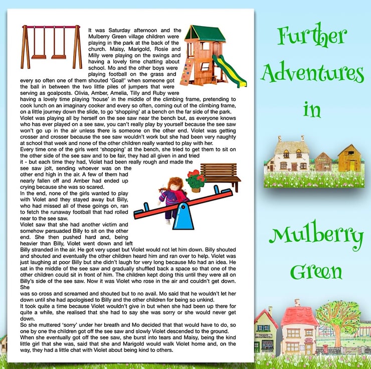 Maisy and her best friend Mo live in a pretty village called Mulberry Green. Maisy lives with her mum and dad on Mulberry Farm and Mo lives in a little cottage at the top of Mulberry Lane. In the village there are several shops, a doctor’s surgery, a vet’s, a post office, a little church and, of course, a school – Mulberry Green Infants’ School, where Maisy and Mo are pupils.