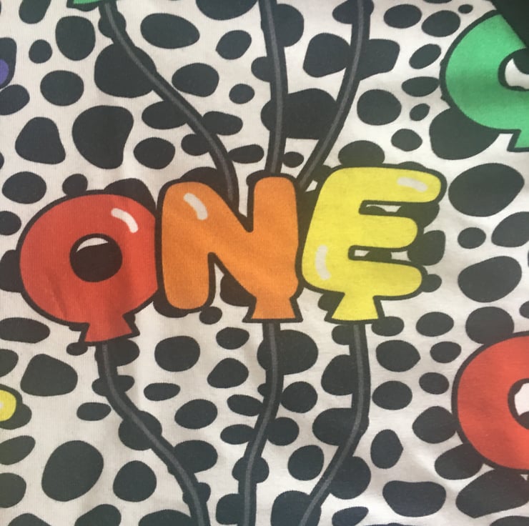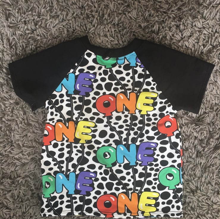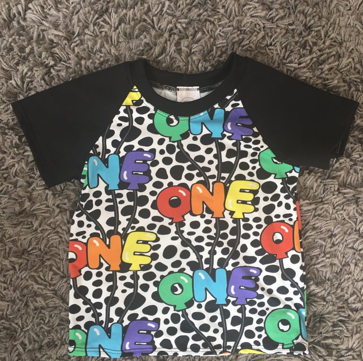 Made using a balloon print fabric for the body and black fabric for the sleeves.