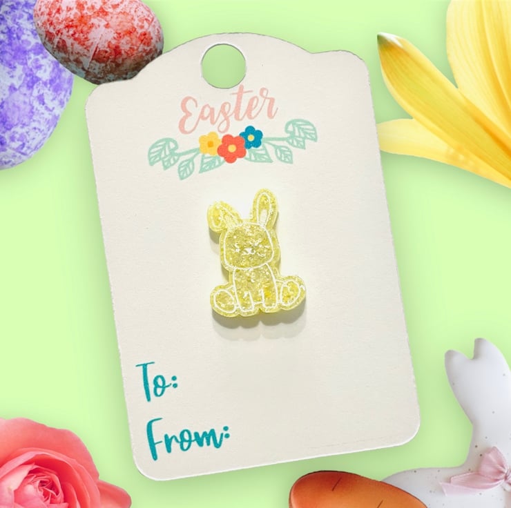 Brighten up any outfit this Easter with this cute Easter bunny brooch, available in a variety of pastel colours.