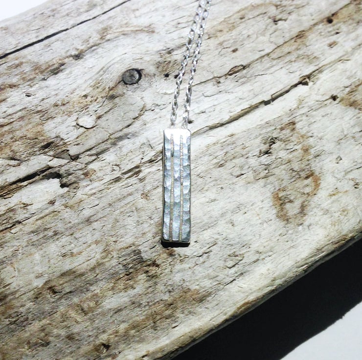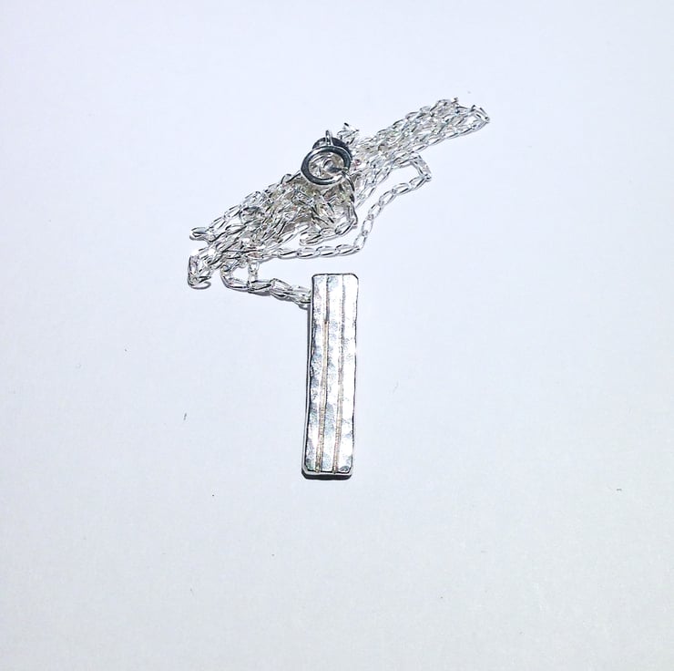 I have made this beautiful little pendant from sterling silver wire which has been soldered and hammered to create an interesting irregular design.