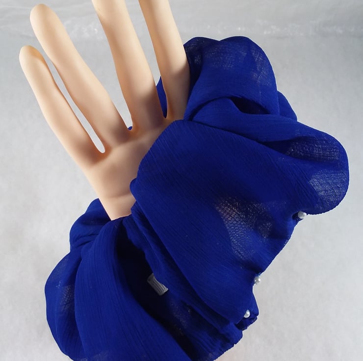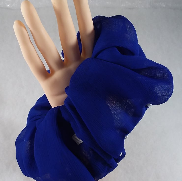 This scrunchies are beaded all round and the pearl beads complement the colour blue. This is beautiful to have.