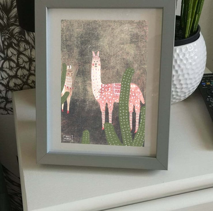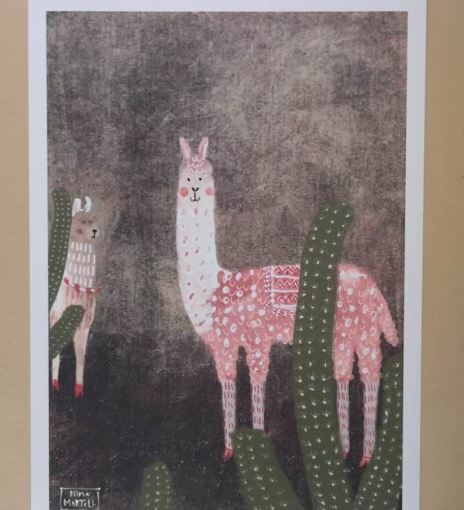 This is an A4 print of my cute Llamas. Two cute llamas with cacti. One of the llamas is very snooty as you can see by his expression :).