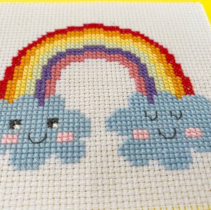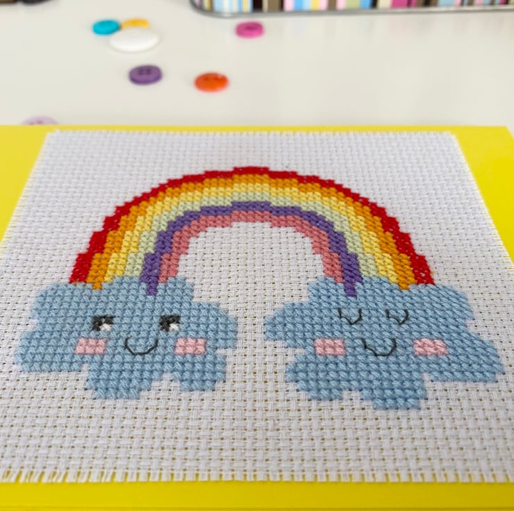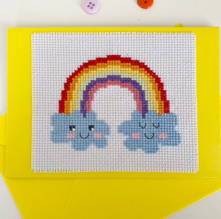 Send super happy get-well/best wishes or any other sentiment with this colourful and cute rainbow design cross stitch card.
