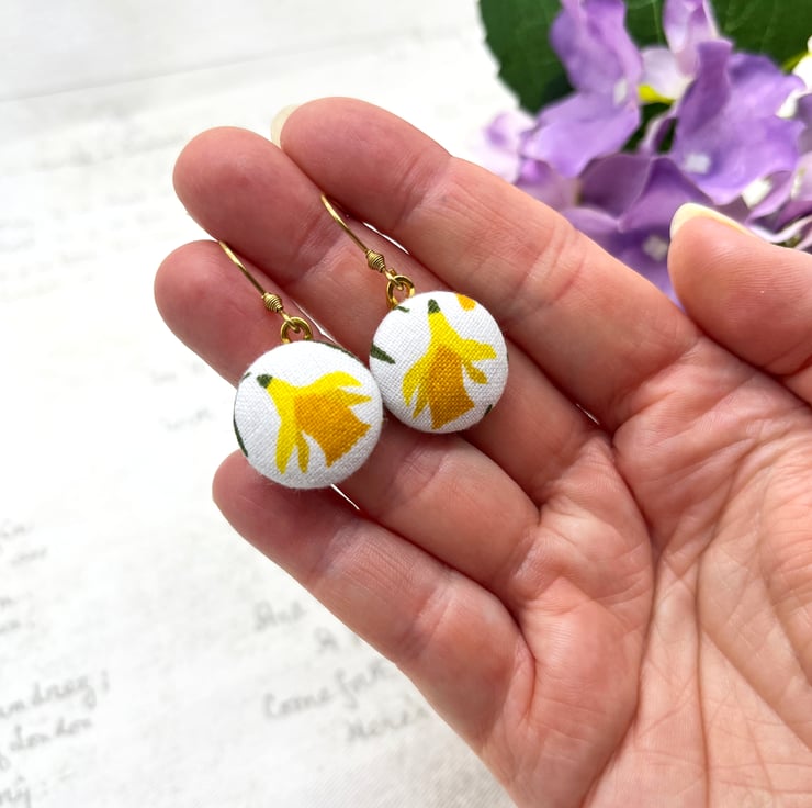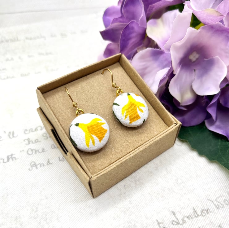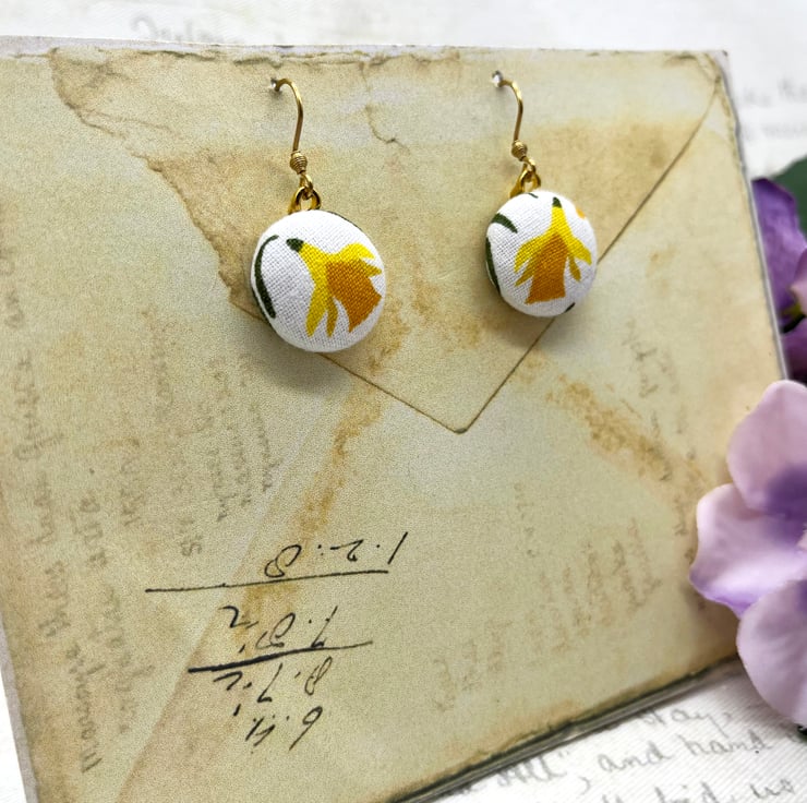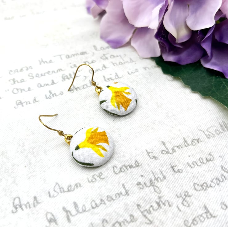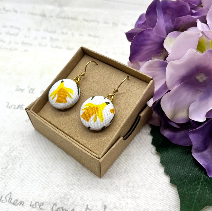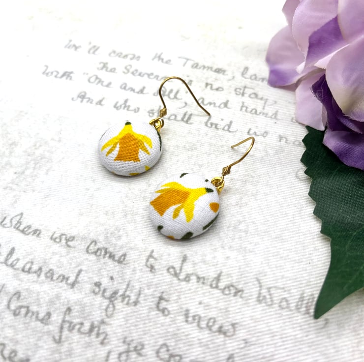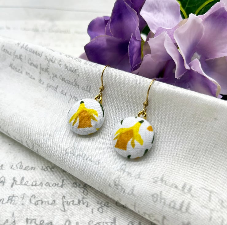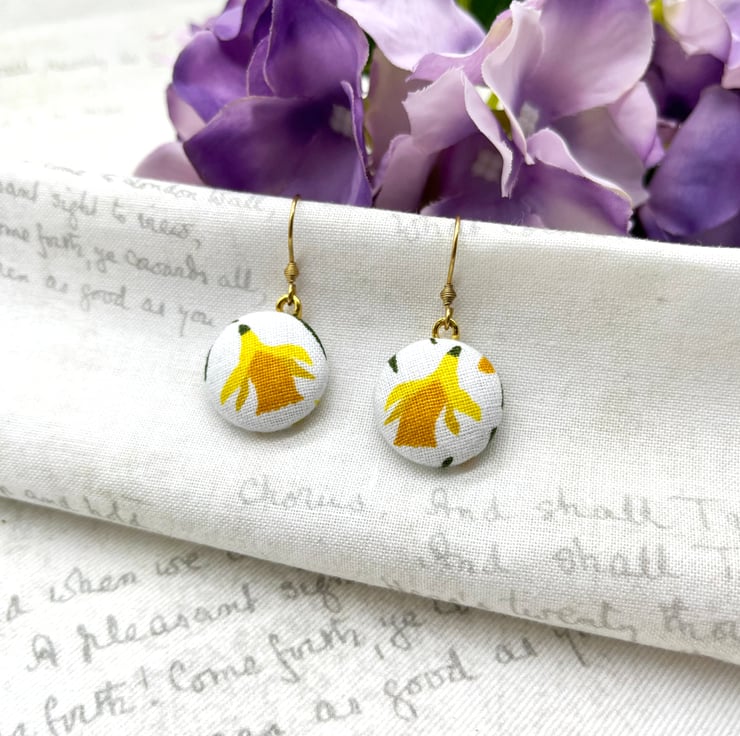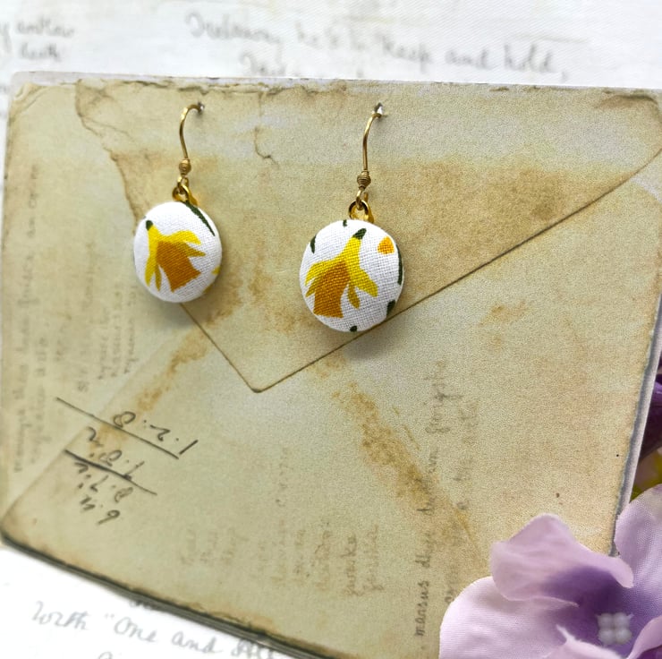 Sunny nodding daffodils – a perfect way to celebrate spring all year round with these fabric button dangle earrings!