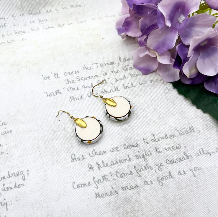 These earrings are a nice smallish size – just under 2cm. I’ve created mirrored daffodil flat back 19mm buttons, using similarly shaped daffodils to match.