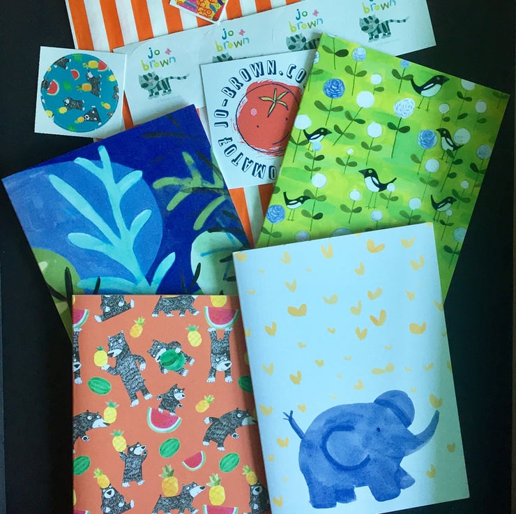 Cards are A6 approx, matt finish with white envelopes and Jo Brown Logo on back. Each card has 1 x Jo Brown sticker to seal © Jo Brown