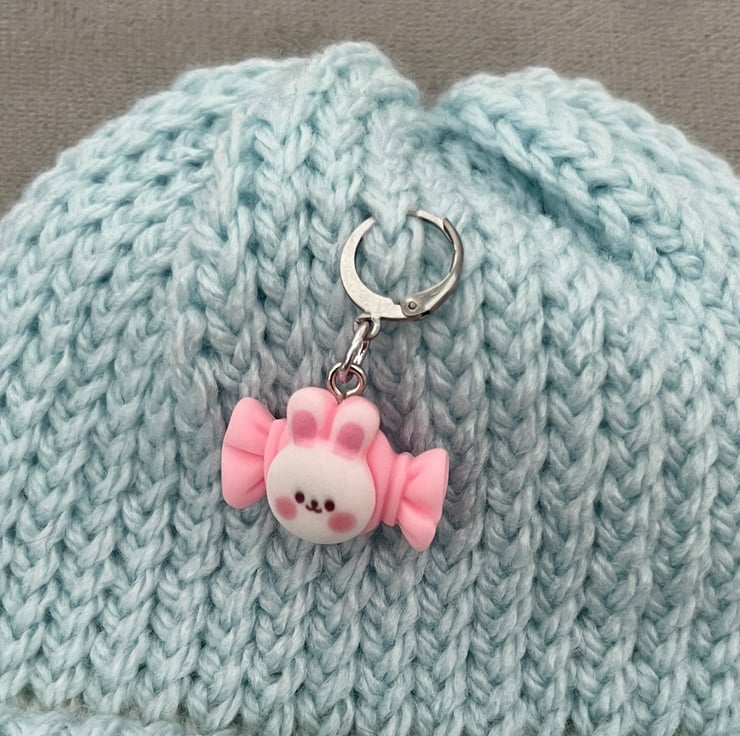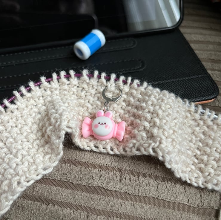 A sweet rabbit stitch marker progress keeper for your knitting or crochet from our bakery collection