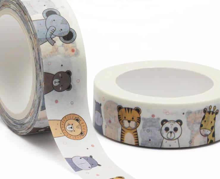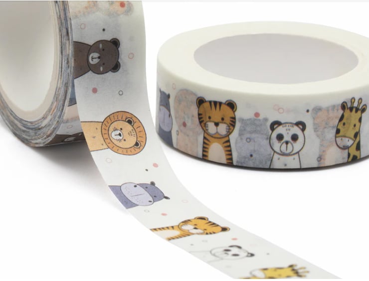 Super cute zoo animal washi tape, includes Giraffe, Lion, Tiger, Hippo, Bear, Elephant and Lion.