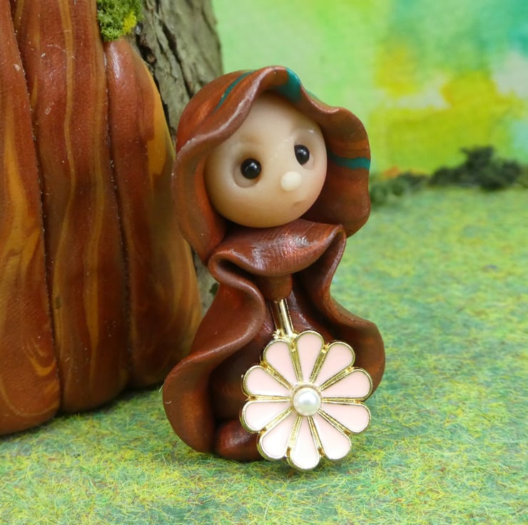 This is a 'one of a kind' creation having been entirely handmade without the use of moulds here at my studio on the Sussex Coast. Modelled with artist blend polymers, blushed before sealing with lacquer, Mirth has sparkling black onyx eyes and variegated robes. Mirth the Blossom Gnome is just one and a half inches tall.