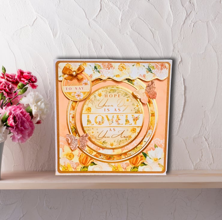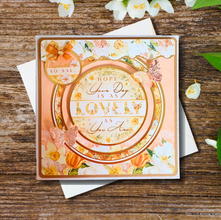 A beautiful square floral greeting card, handcrafted by me, using the Hunkydory Floral Wonder Deluxe Card Collection.