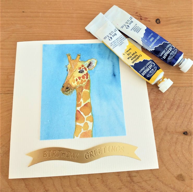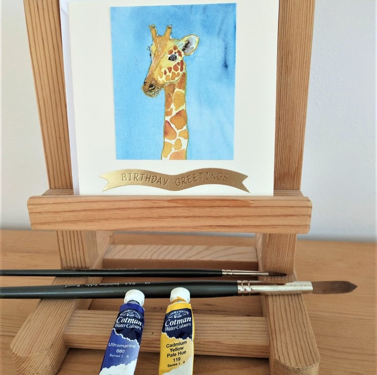 A cute Giraffe watercolour greetings card painted with good quality materials.