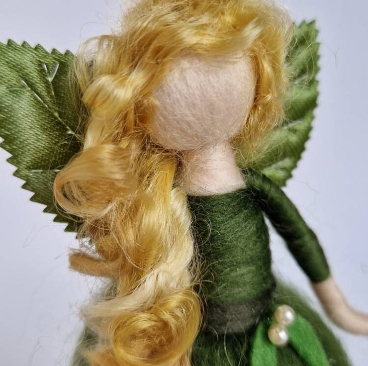 Her gown has been made using the softest wool rovings in bright white and leafy green.
