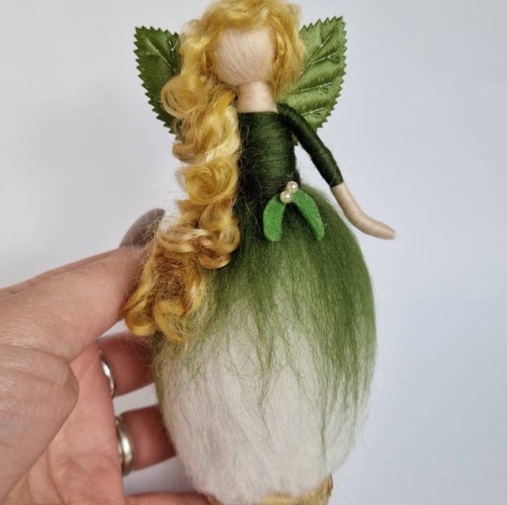 This adorable needle felt fairy has been created inspired by the small white berries which come into season during the chilly winter months.