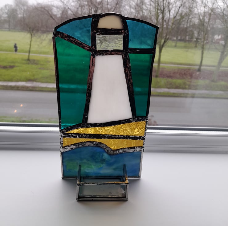 I have a selection of stunning cathedral glass colours which I wanted to display in a free standing form.