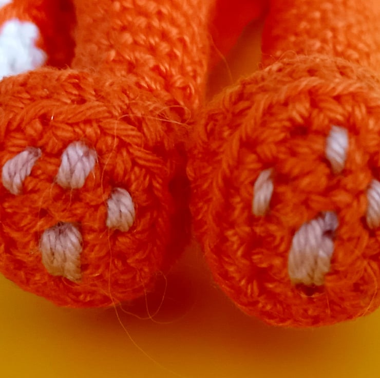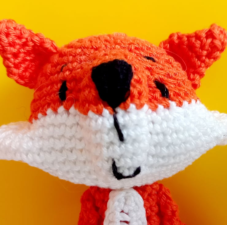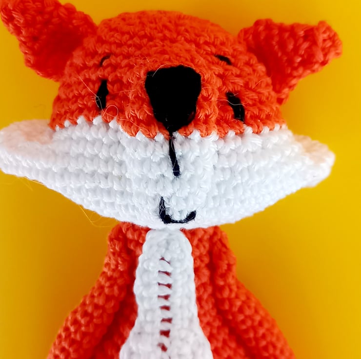 Beautiful hand made by myself, crochet fox. I designed the pattern to compliment my book character in Fox Does What? Surely Not! Made from100% mercerised cotton and stuffed with 100% hi-loft polyester soft toy stuffing. Suitable from age 1 and up. He is approx 29cm tall and very cuddly. Please note he will be posted in a jiffy bag.