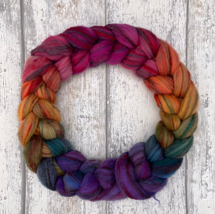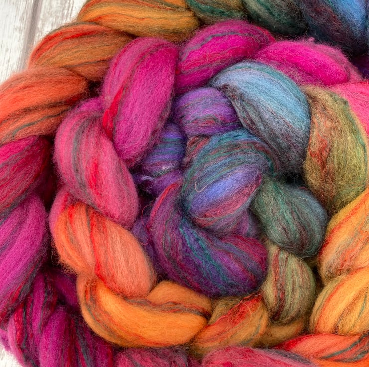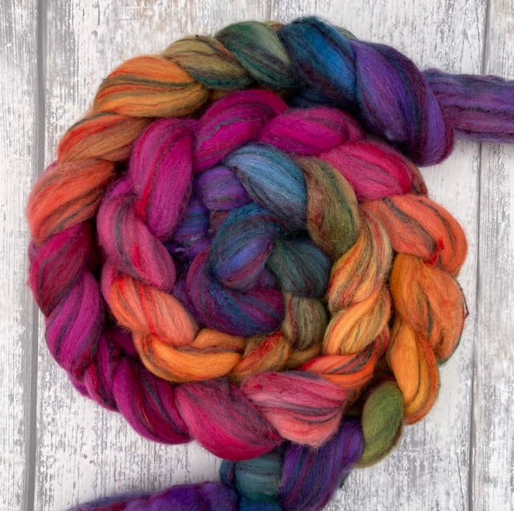 This limited edition blend is a one time only. A soft mix of Falkland, bamboo and sari silk wool for a truly unique spin.