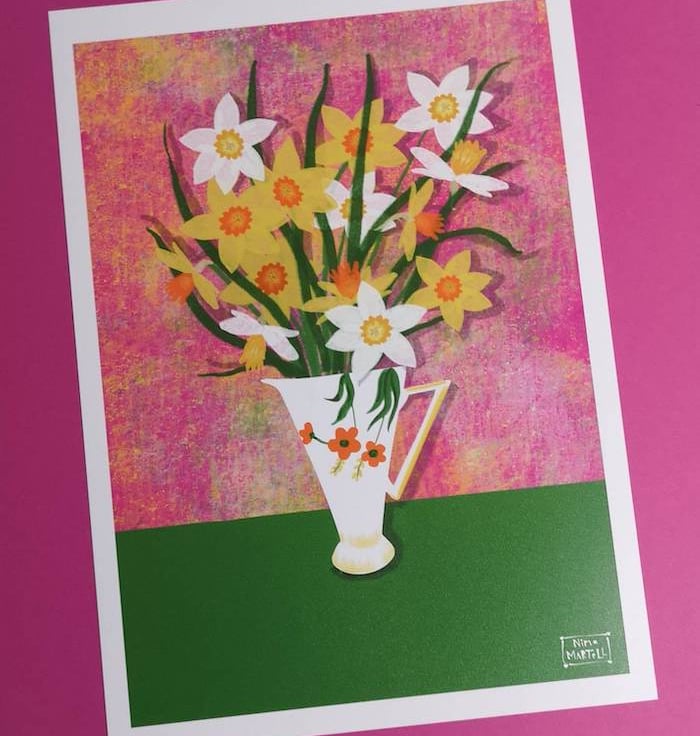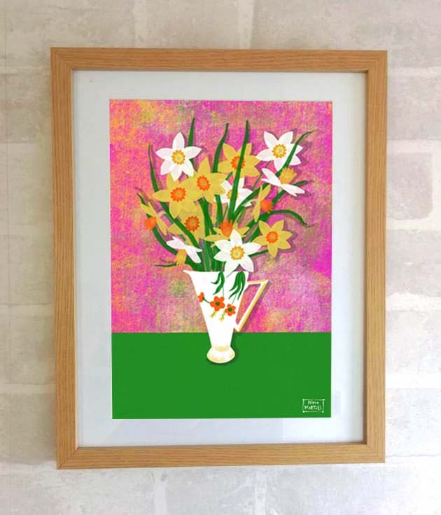 This is a print of my daffodils in a vintage jug . I love vintage pottery. You can choose from A5, A4 or A3 size from the dropdown options box.