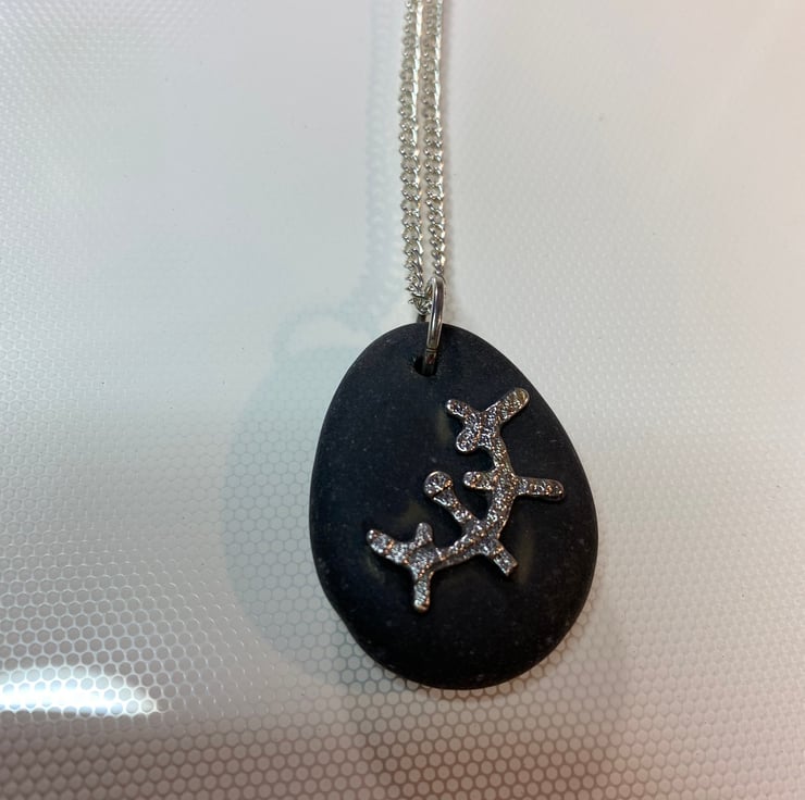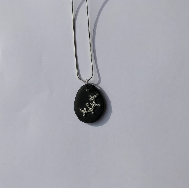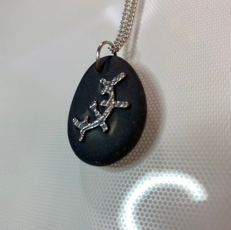 Pewter is an attractive metal that has been used for the production of household and other items in Britain since Roman times. It is an alloy consisting mostly of tin that has been mixed with small amounts of other metals such as copper or antimony to harden it and make it more durable. Pewter does not tarnish like silver. The pewter I use is recycled. This is a unique one-off pendant, with cuttlefish marks on the sigil.