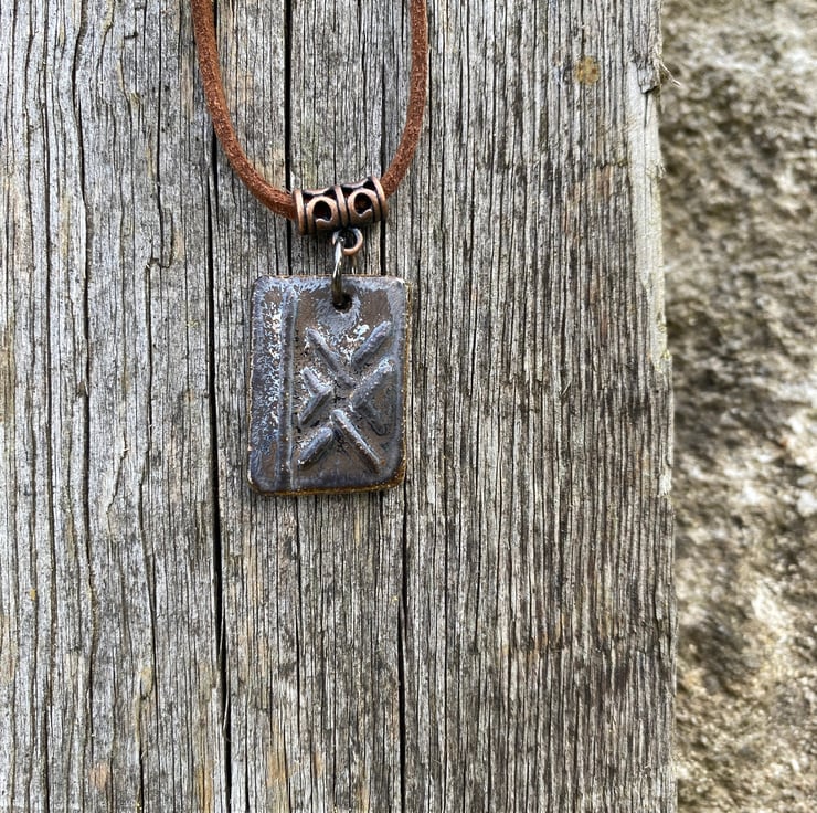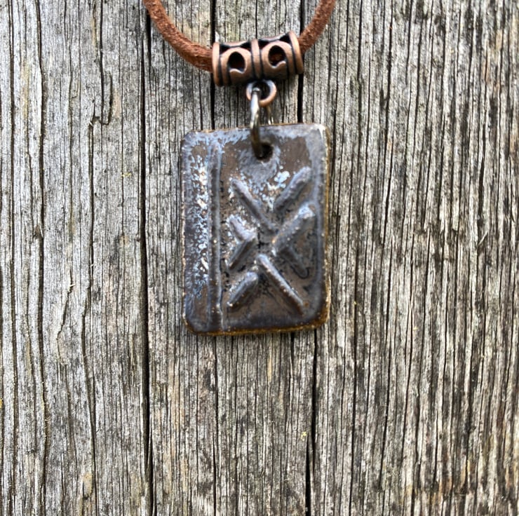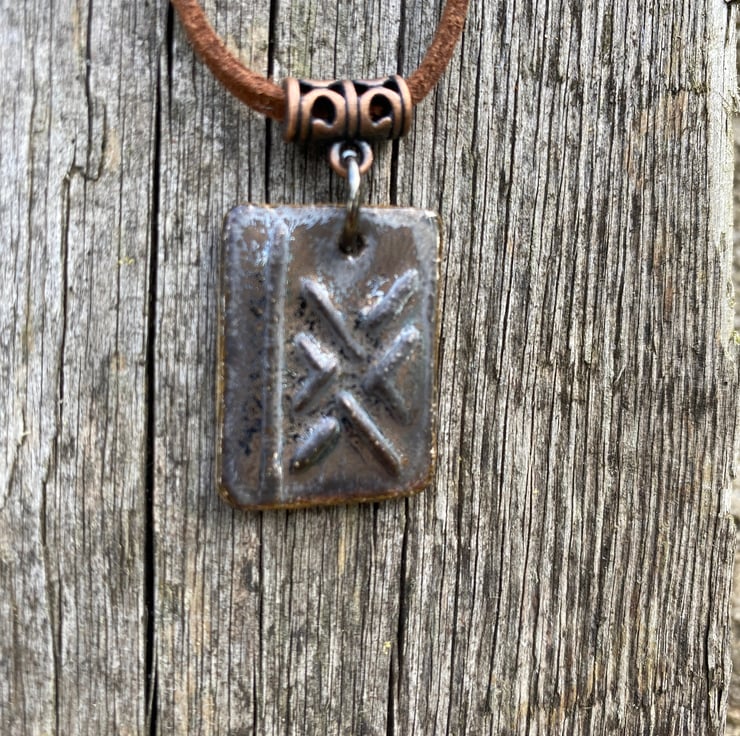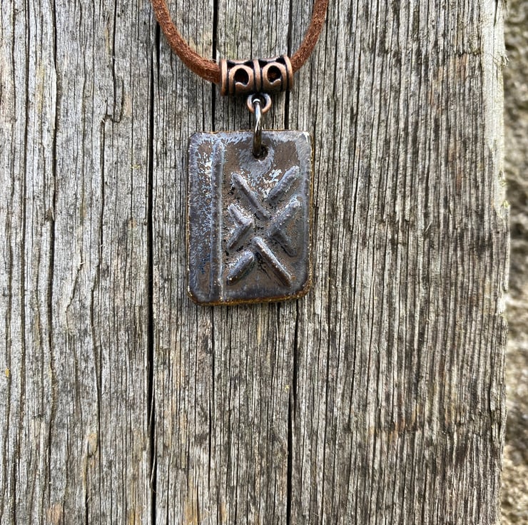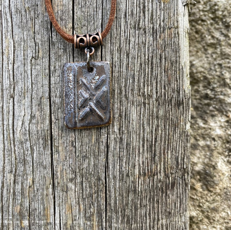 Ogham rune pendant, ceramic rune, finished with a rustic with a metallic lustre and bronze tones.