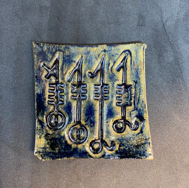 Each Svefnthorn I hand-make is different. This piece is ceramic and decorated with cobalt blue and a gloss finish.