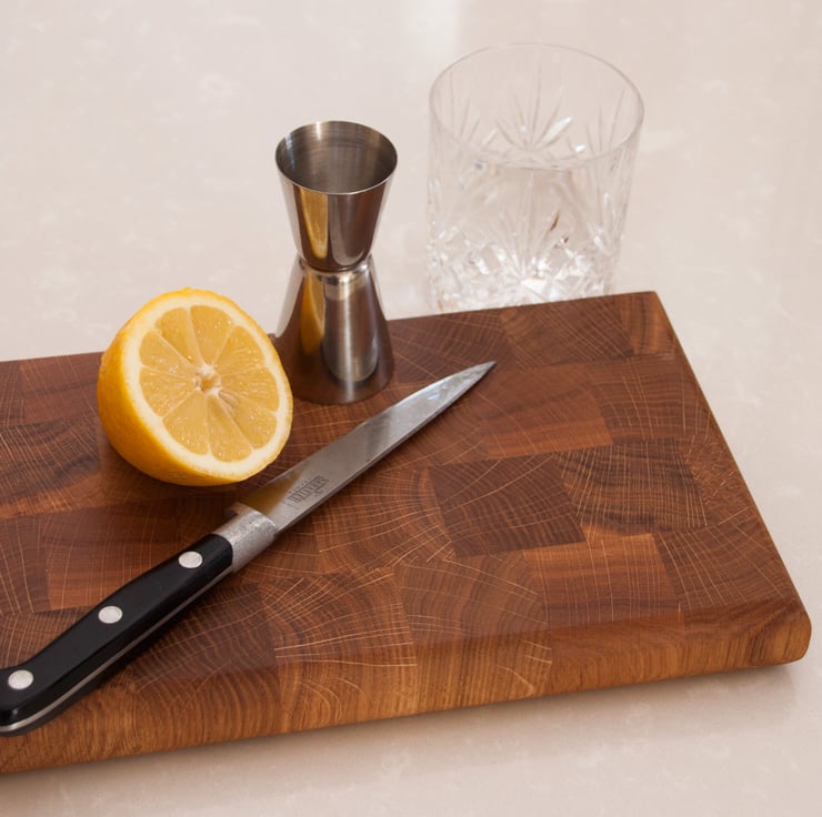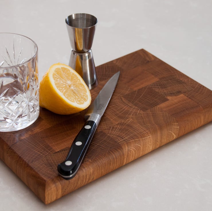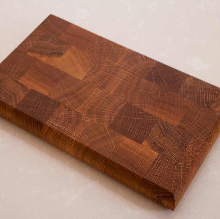 Oak end grain chopping board made from up-cycled solid oak worktop.