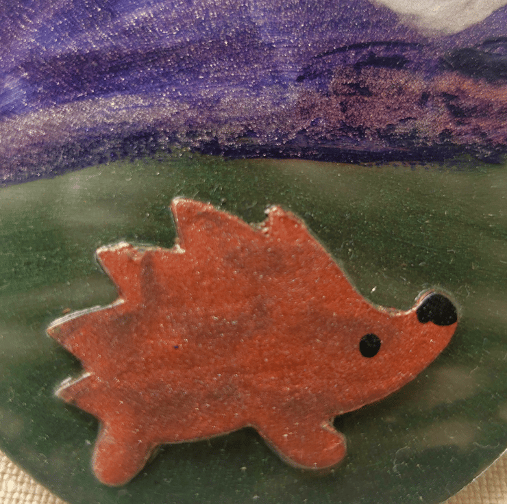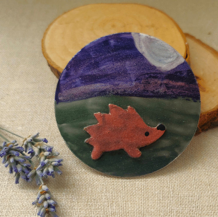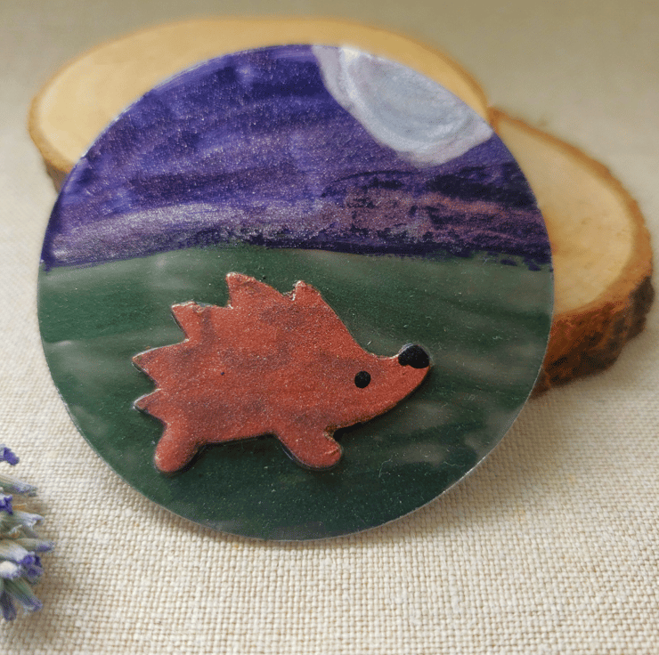 I've repurposed a copper hedgehog blank and attached it to the stainless steel blank, which has been decorated in acrylics. For a bit of character I've added a face to Mr Hog. A quirky one off for anyone who loves our prickly friends.