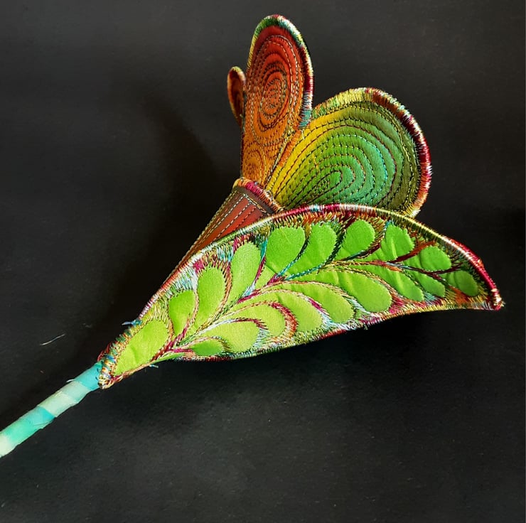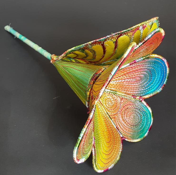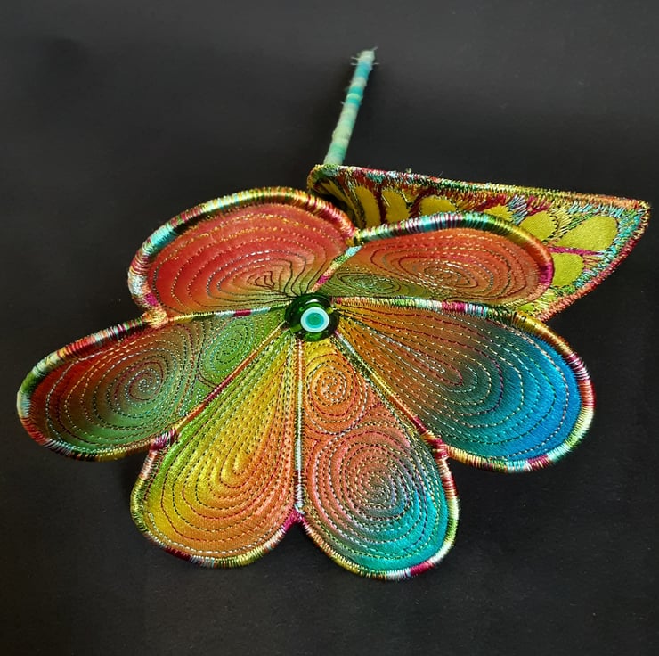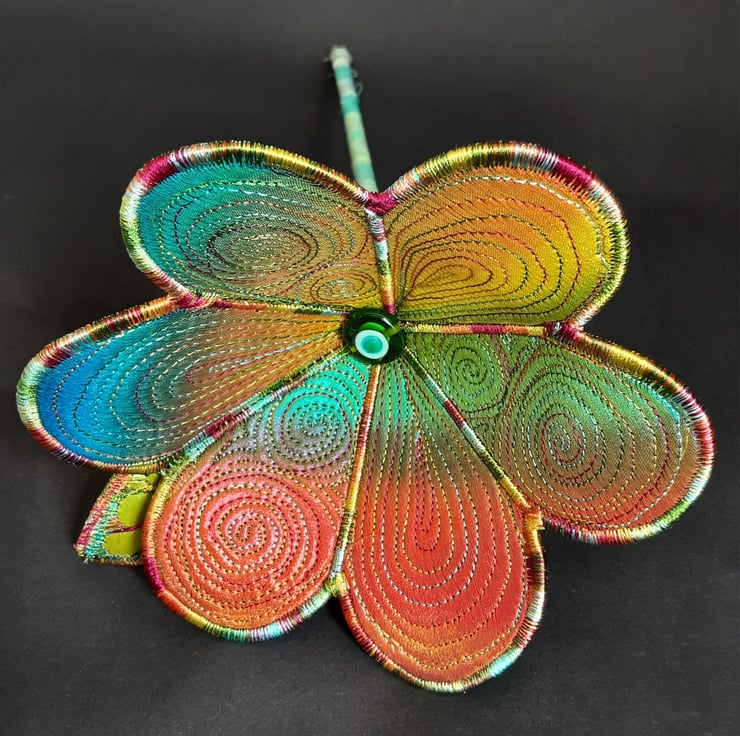 This is a handmade machine stitched textile flower