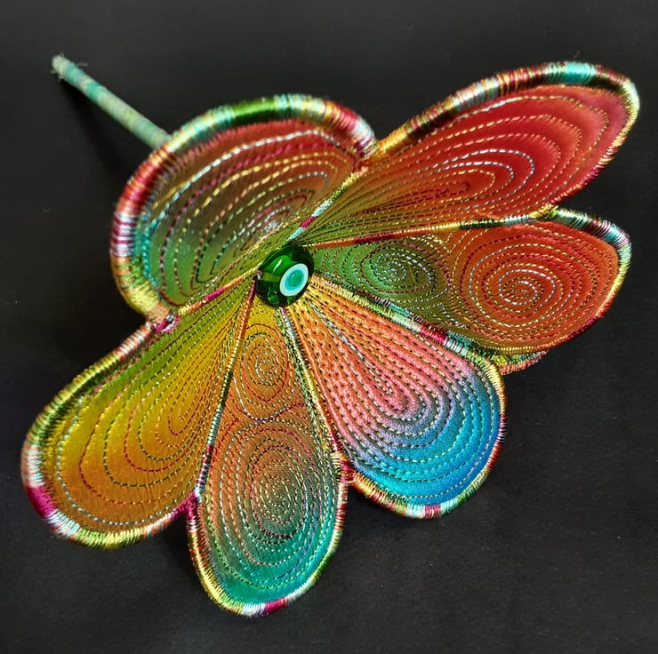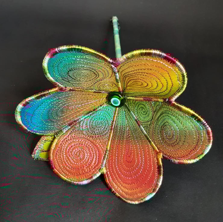 Textile Art Flower in Rainbow Colours