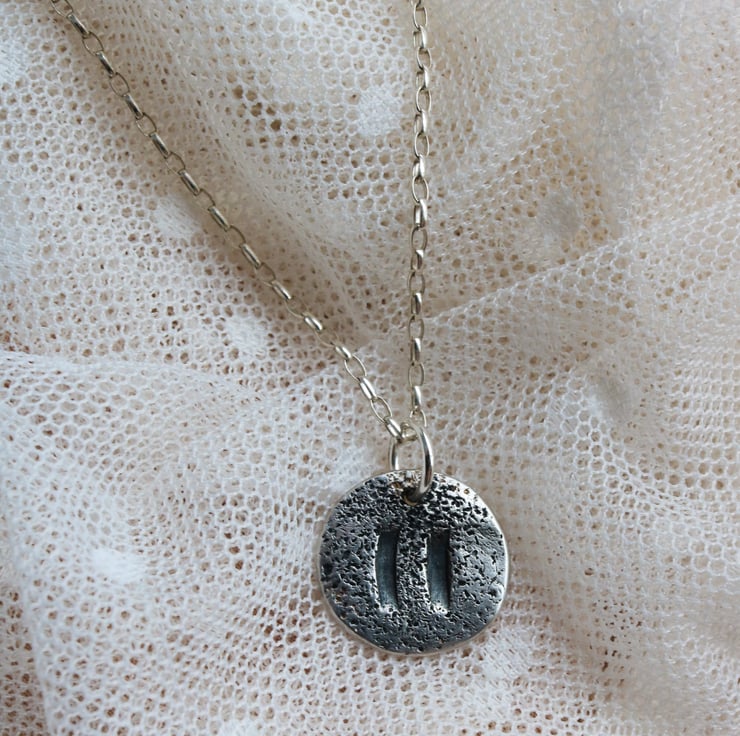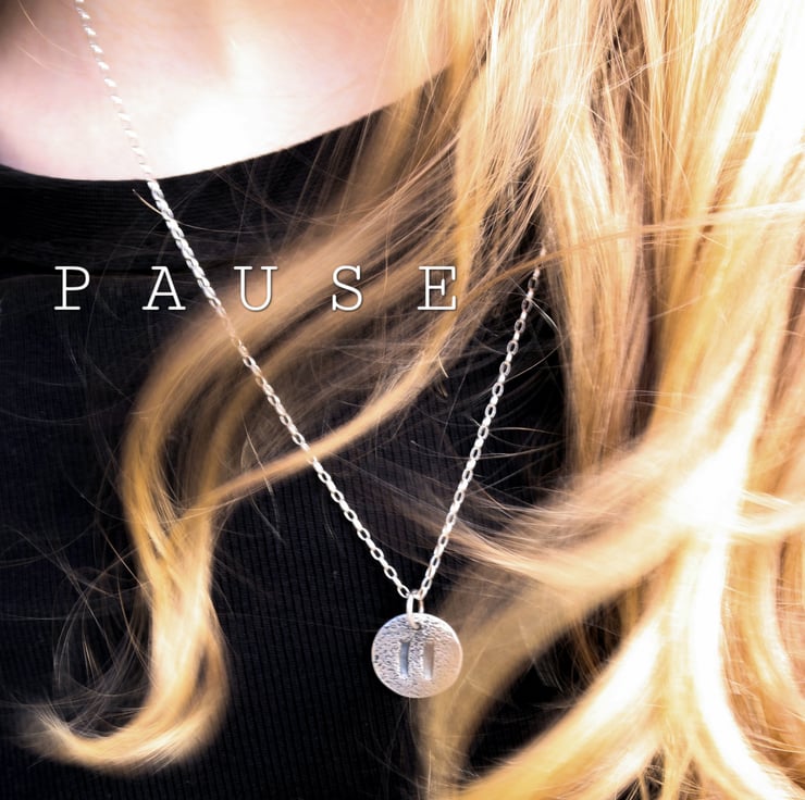 Pause symbol necklace in sterling silver on a sterling silver 50cm chain. Approx 2cm diameter.