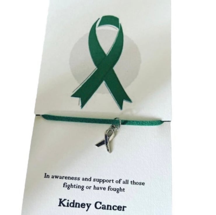 Kidney cancer green ribbon charm corded wish bracelet gift awareness and support