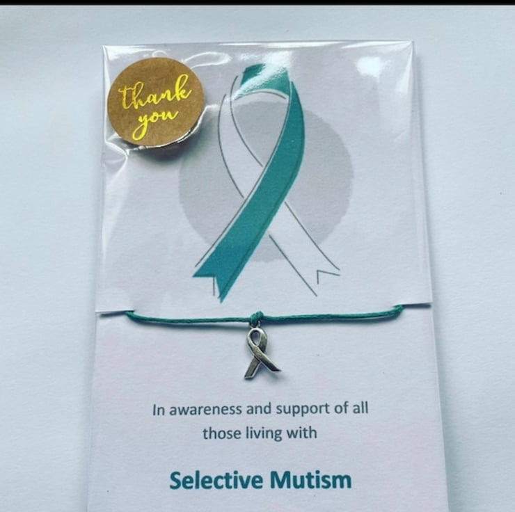 Selective mutism wish bracelet teal ribbon charm bracelet sentimental keepsake
