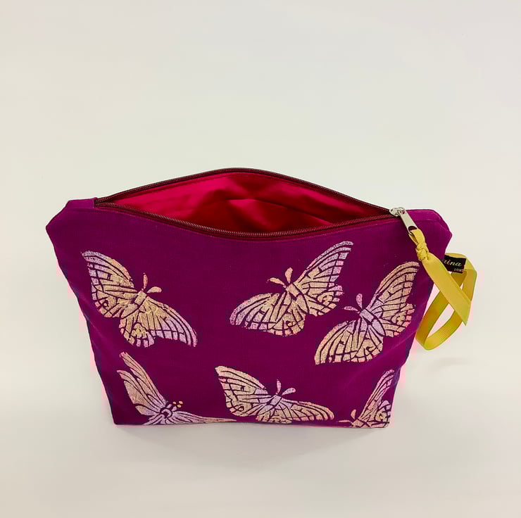 Stylish hand printed luxurious 100% natural linen Makeup Bag featuring original block printed design on the front, perfect for keeping all your daily essentials like makeup, sunglasses, phone etc safely stored in one place. This Makeup Bag is your new everyday essential, perfectly sized to fit in your handbag or suitcase.
