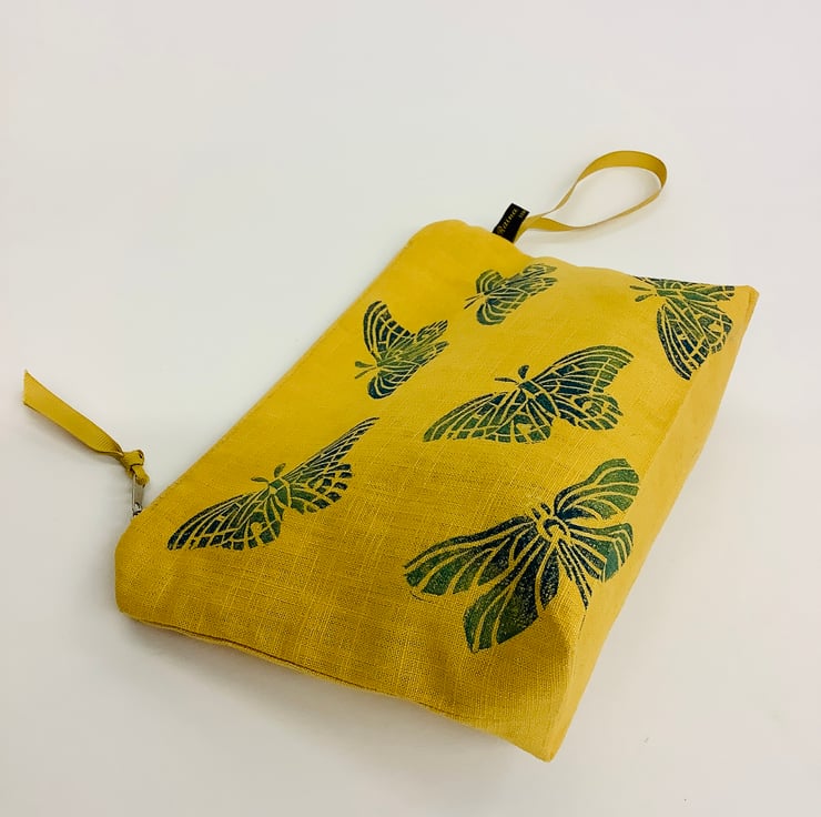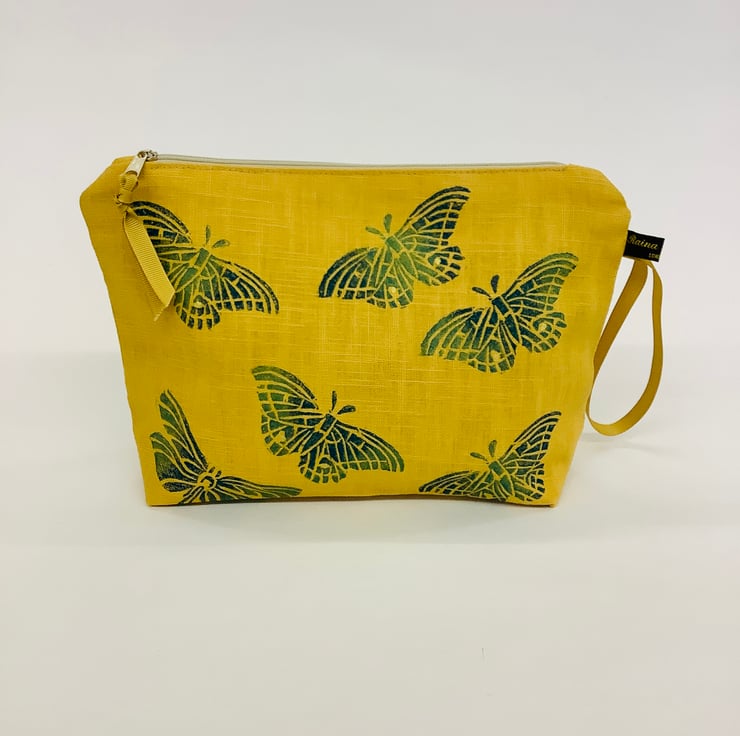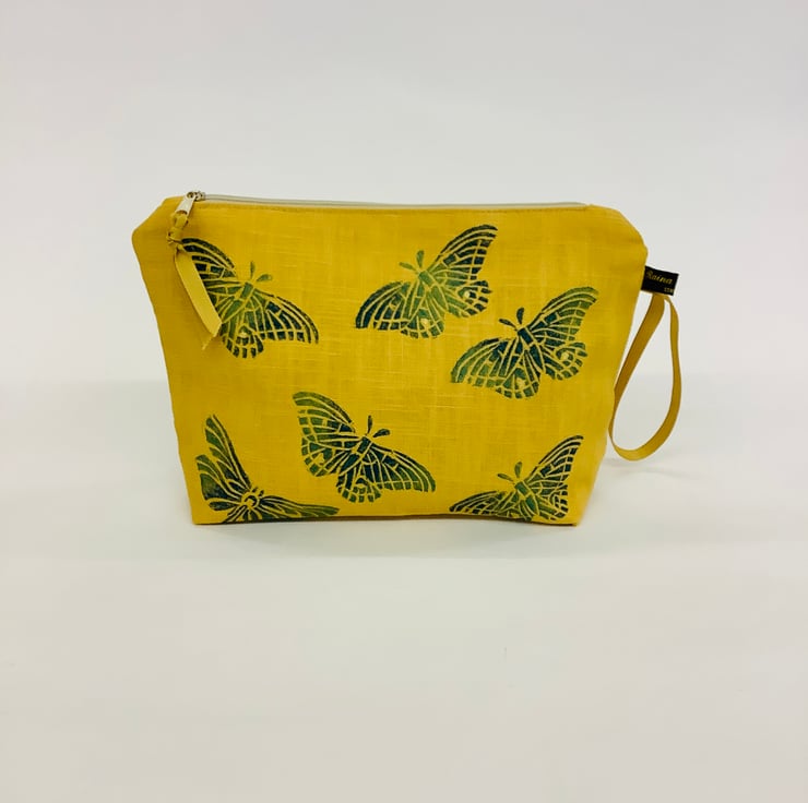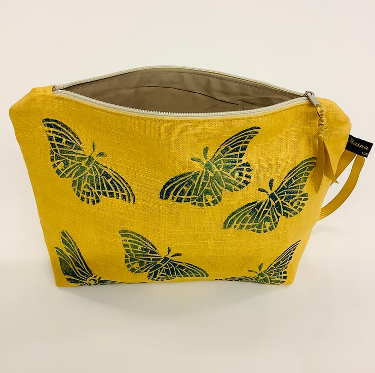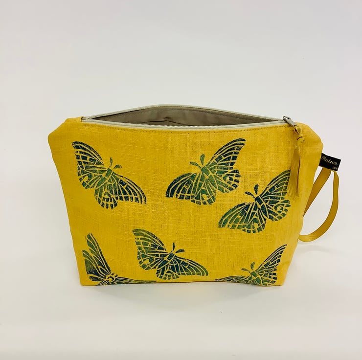 Ochre Yellow Butterflies and Dragonflies linen makeup bag