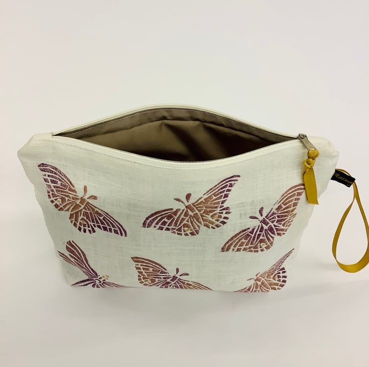 Stylish hand printed luxurious 100% natural linen Makeup Bag featuring original block printed design on the front, perfect for keeping all your daily essentials like makeup, sunglasses, phone etc safely stored in one place. This Makeup Bag is your new everyday essential, perfectly sized to fit in your handbag or suitcase.