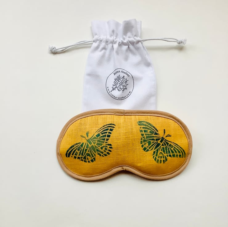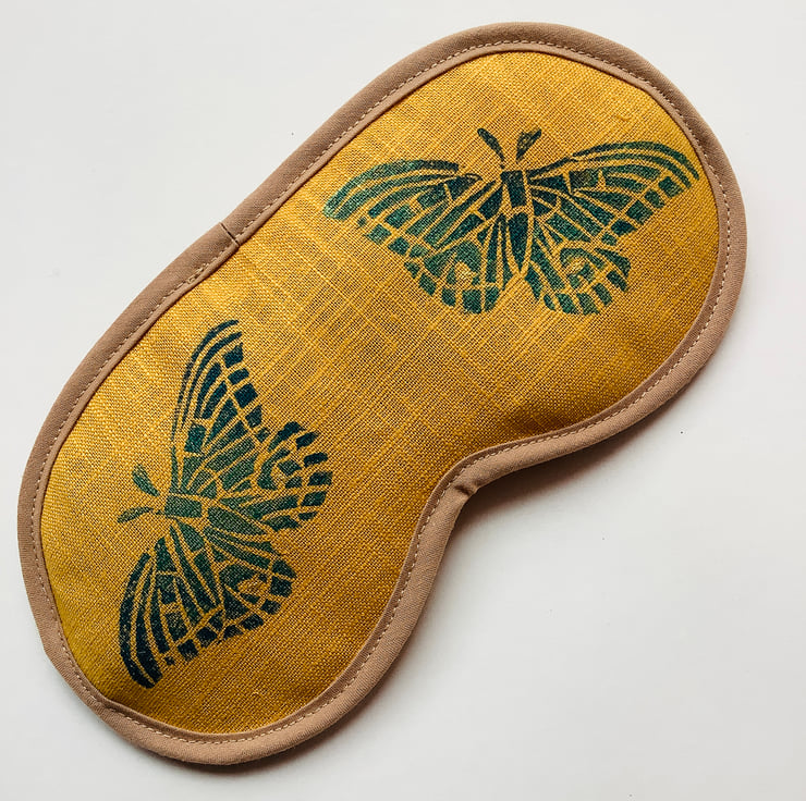 Eye mask hand block printed, made in naturally-sourced, eco-friendly 100% linen and infused with sweet scented lavender to help you relax and drift off to dream filled night’s sleep.