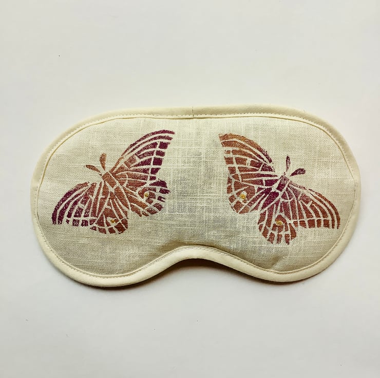 Eye mask hand block printed, made in naturally-sourced, eco-friendly 100% linen and infused with sweet scented lavender to help you relax and drift off to dream filled night’s sleep.