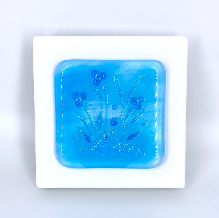 I've always been a stickler for detail which isn't always easy to achieve with fused glass. After many hours of 'playing' I created my meadows which are made up of tiny lamp worked flowers and foliage with gorgeous accents of sparkle from dichroic glass. The result is ethereal - delicate, feminine and dreamy.